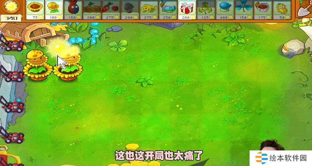 1、开局还是先布置仙人掌,种植阳光向日葵和花盆,快速收集能量在后两排种植向日葵。