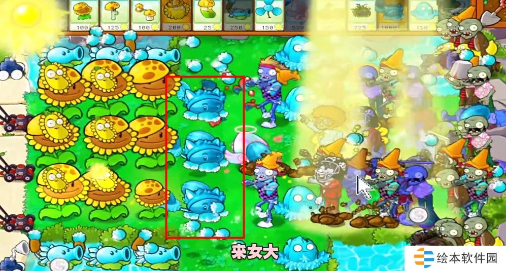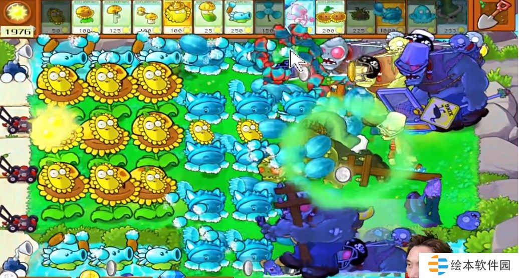 3、后面能量足够了可以种植冰瓜香蒲,这个攻击力非常高,但是需要能量很多。