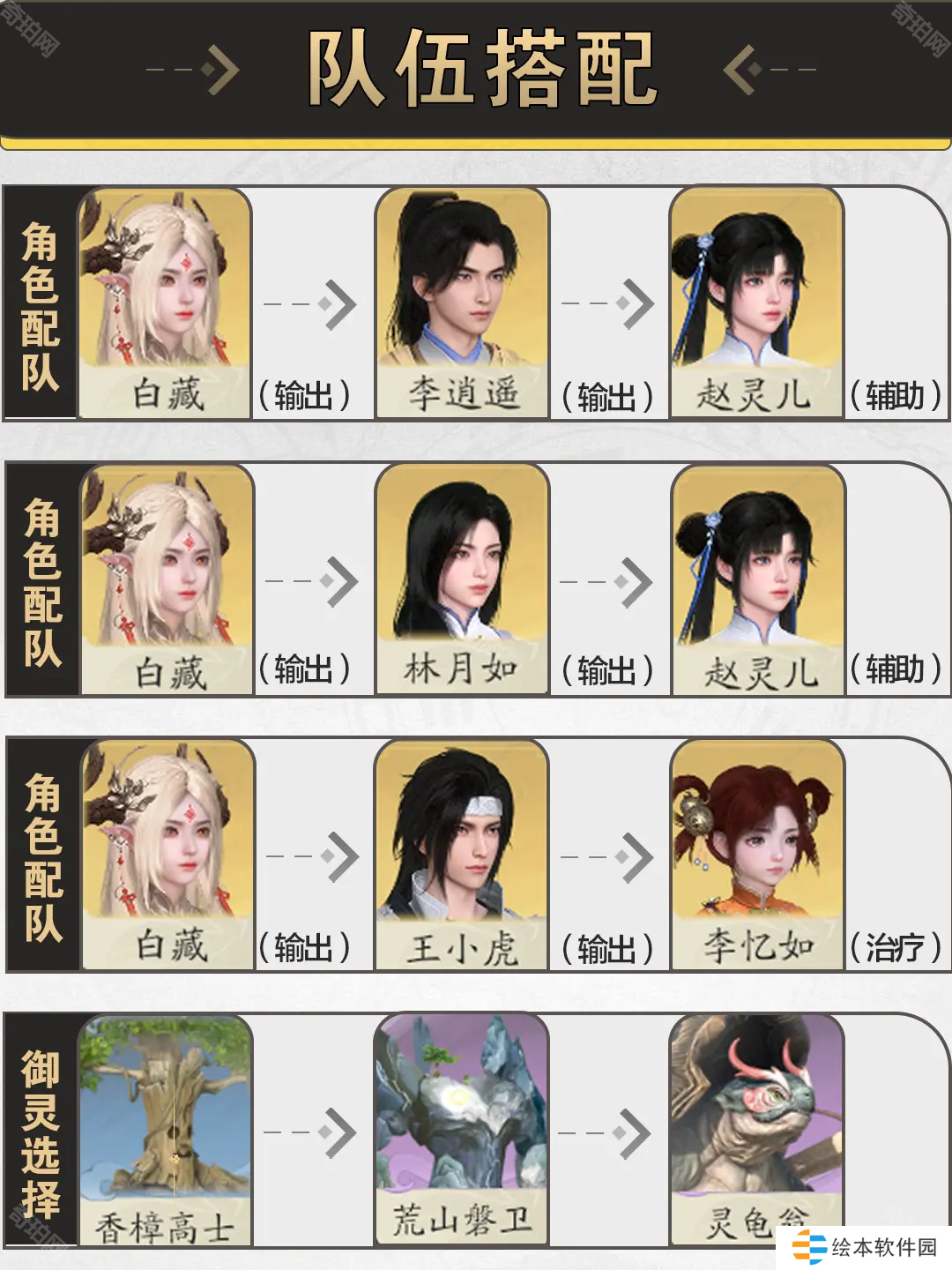 ①白藏(输出)+李逍遥(输出)+赵灵儿(辅助)