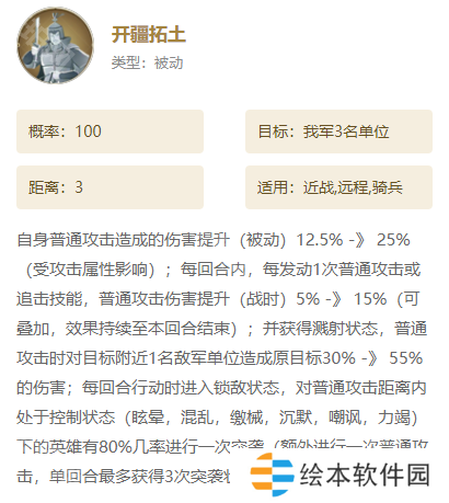 自S3出来就是开荒队的绝对T0,但是到如今每个版本的土地守军都在针对卫青做了加强,导致卫大将军已经逐渐变得开荒乏力,处于T1能用的级别。拆技也是只适合卫青自己带,其他追击英雄大部分都要带破刃强袭或加冕等更重要的技能。推荐没拆技和白板本体的补一个。