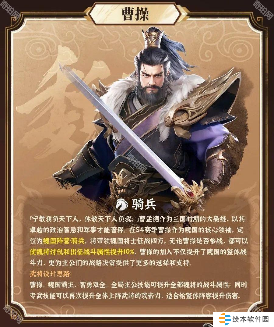 魏阵营作为培养成本最低的阵容,加上曹老板的个人魅力,无疑会成为四赛季的主流阵营,相较于蜀国和吴国,更值得和适合平民和小氪去培养