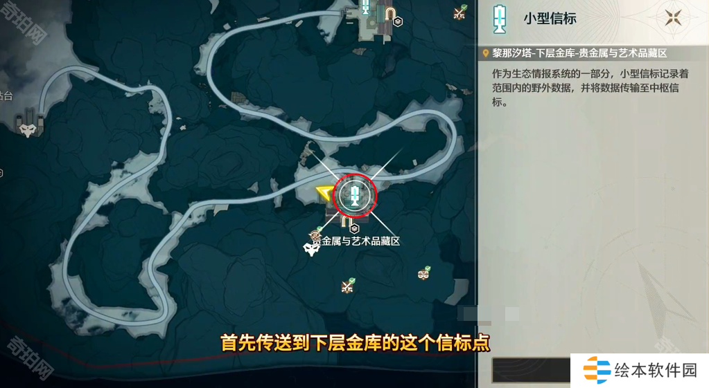 1、首先我们先前往下层金库的贵金属与艺术品藏区这个传送点