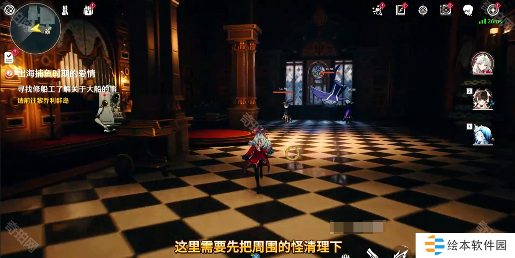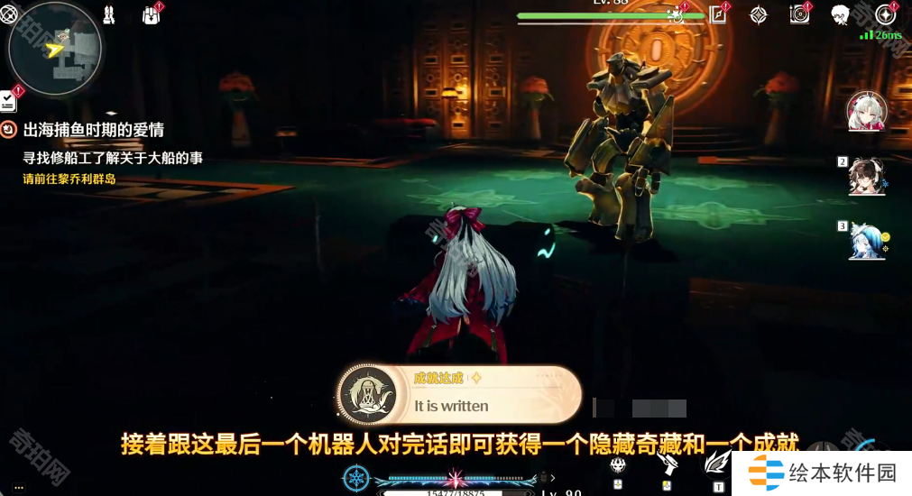 6、最后前往第三个声骸正对面的房间,里面可以看到一个绿色血条的机器人在和怪物战斗