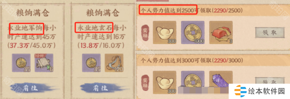 1、提前搞定势力值/治世策勋的军饷/玄石产出速度任务