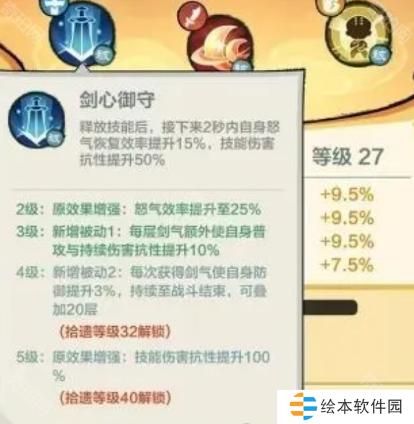剑主的拾遗和刀主有一个很大的不同就是:剑主是自身的强化,可以改善剑主自身脆皮的缺点,获得高额抗性,而刀主还有对友方的增益。