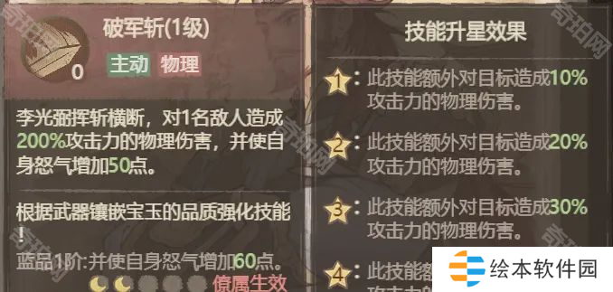 平平无奇输出技能,宝石效果增加怒气才是最重要的,不过怒气增加只有100,没有其他辅助型僚属回复多。