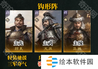颜良:主先,战法携带:轻装援驰+三军夺气