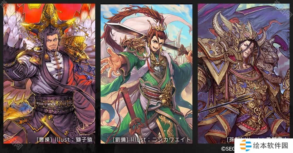 【预约奖励内容】(左)「SR 曹操」、(中)「SR 刘备」、(右)「SR 孙坚」