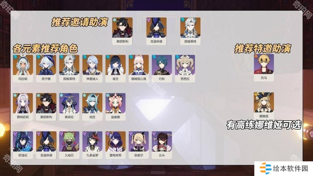 邀请助演:推荐从好友处借用以下高练高配角色:莱欧斯利、克洛琳德、那维莱特