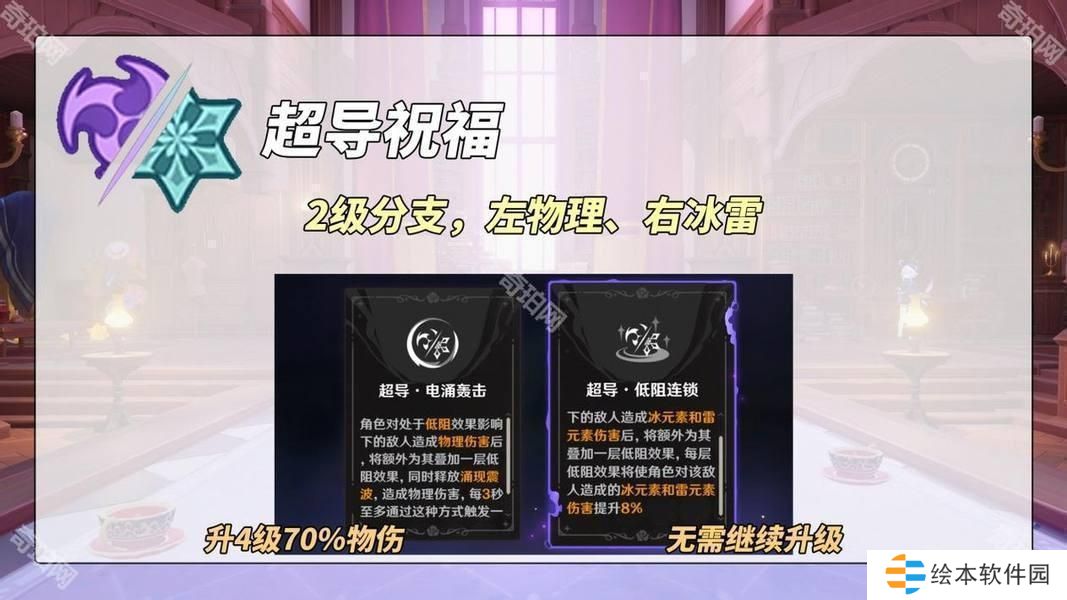 冰雷角色则走2级低阻连锁56%冰雷增伤,后续4级到是没必要升级,纯环境伤害补强。