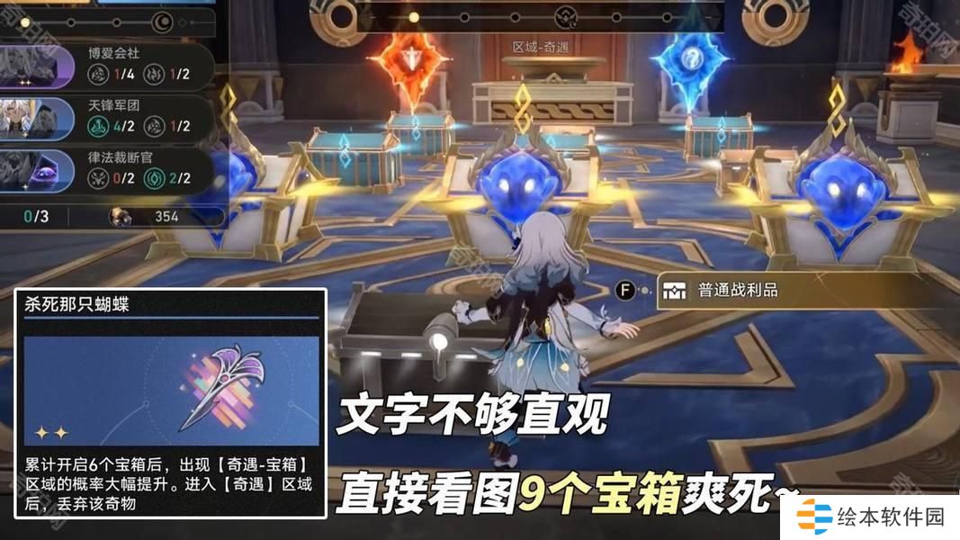 开启6个宝箱后,提高‘奇遇-宝箱’区域的概率,内含10个宝箱,有奇物、碎片、祝福、方程,直接大丰收。