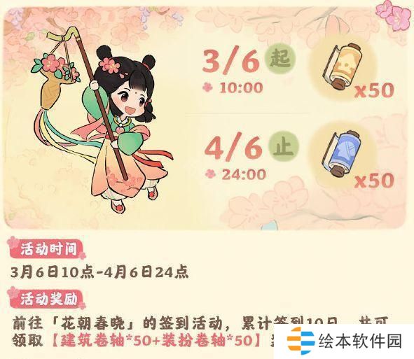 版本更新后登录游戏累计签到10日,共计获得建筑卷轴x50+装扮卷轴x50