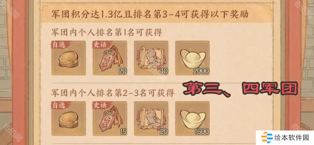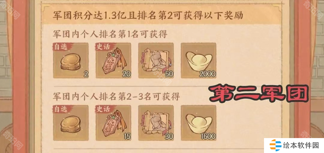 1、本军团综合实力在前四名的都有史话招贤令的奖励。