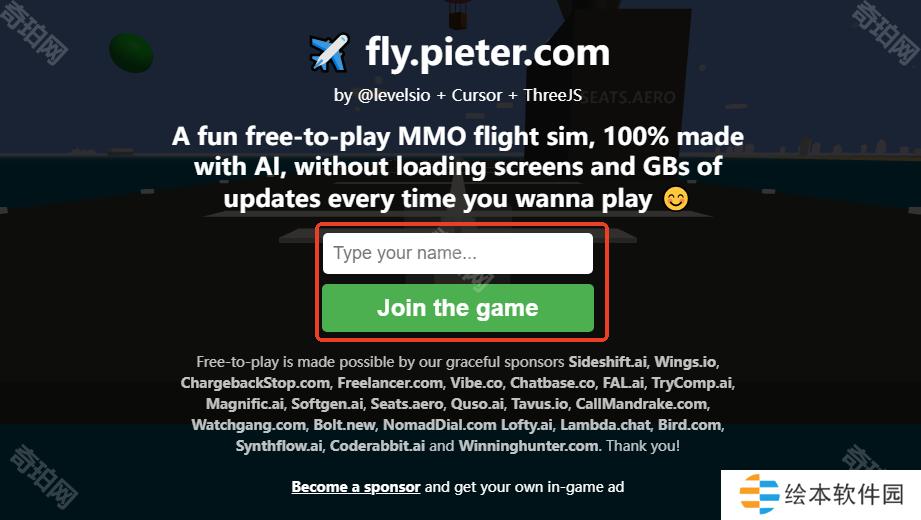 Fly Pieter游戏官网地址是什么?Fly Pieter是一款由AI在3小时内创造的一个游戏,这款游戏在浏览器上就可以游玩,是由独立开发者Pieter Levels使用AI编程工具Cursor仅用3个小时打造而成的3D空战模拟游戏。那么这个游戏我们在哪里可以玩到呢?接下来就和七珀小编一起看看《Fly Pieter》游戏官网地址分享吧。
