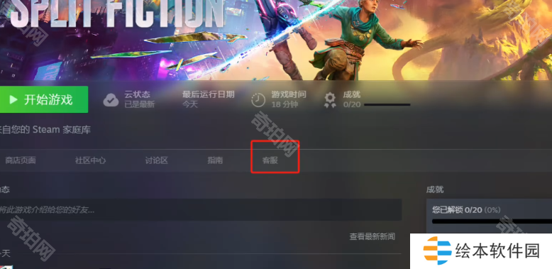 1、打开Steam,在库点击双影奇境游戏,在右侧的游戏主页中点击客服
