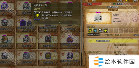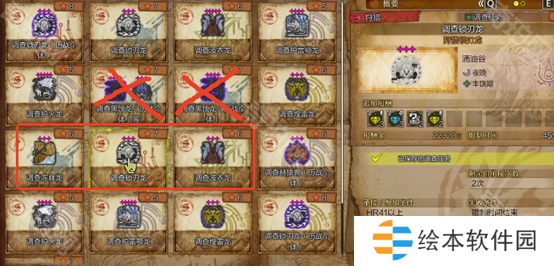 2、 这里以锁刃龙为例,它的调查任务可以拿到3个防具珠和3个武器珠