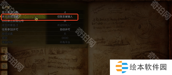 1、 出发前在设置中将多人游戏设置设为仅限支援猎人