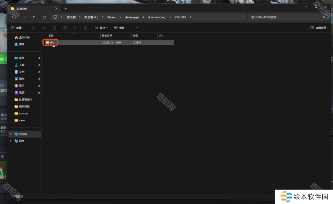 5、打开2246340这个文件夹,然后点击dlc文件夹