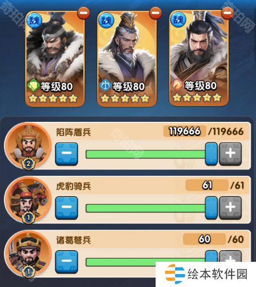 步兵、骑兵、弓兵三个兵种的攻击、防御、生命、破坏力各提升12%,全方位强化战力。
