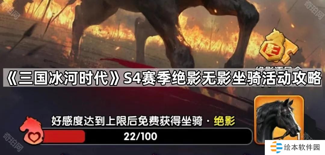 三国冰河时代S4坐骑绝影怎么获得?在游戏三国冰河时代中每个赛季都会举办一个坐骑活动,完成活动后即可获得当前赛季限定的坐骑。在S3赛季中新增的坐骑为绝影,那么有需要的小伙伴接下来就和七珀小编一起看看《三国冰河时代》S4赛季绝影无影坐骑活动攻略吧。