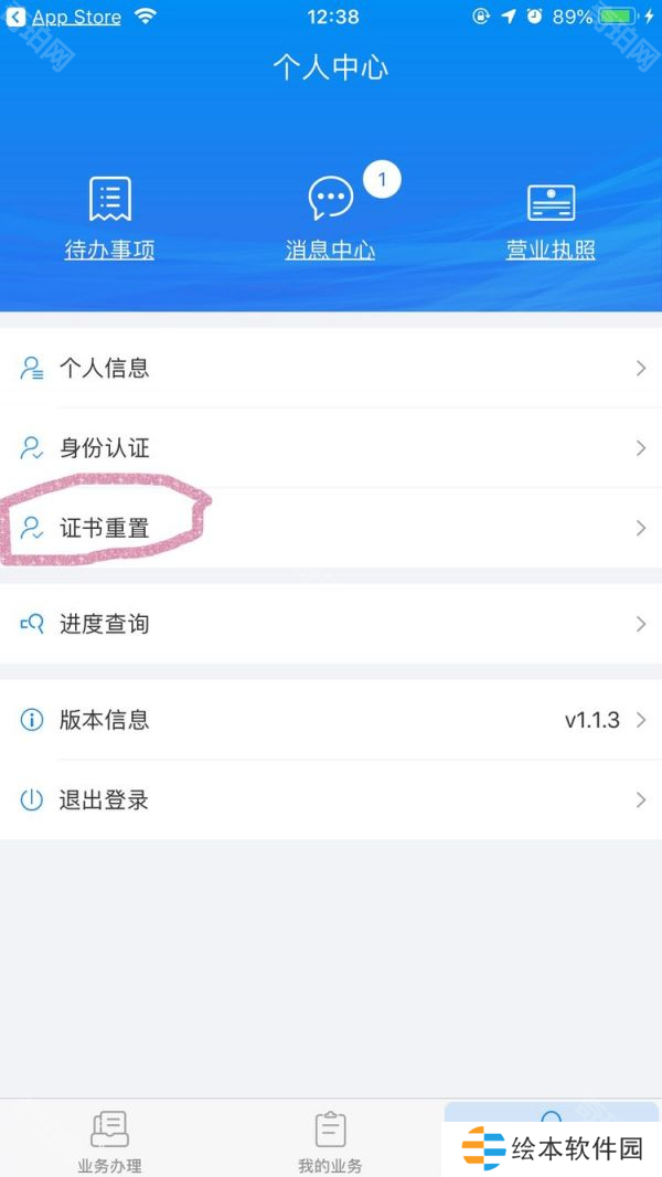 2、进入软件首页后切换到个人中心页面,找到证书重置这个选项