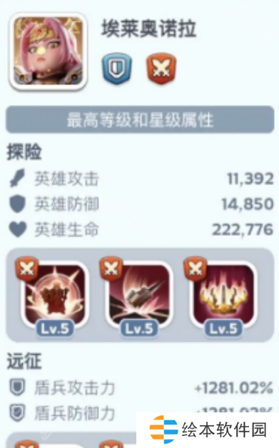 埃莱奥诺拉以烈日之焰般的攻势挫敌锐气。其率领的盾兵每5次攻击,我军全体部队造成的伤害提升5%,受到的伤害降低5%,持续2回合