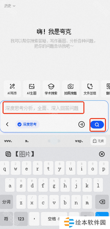 在搜索框左下角开启深度思考后就能使用夸克AI了