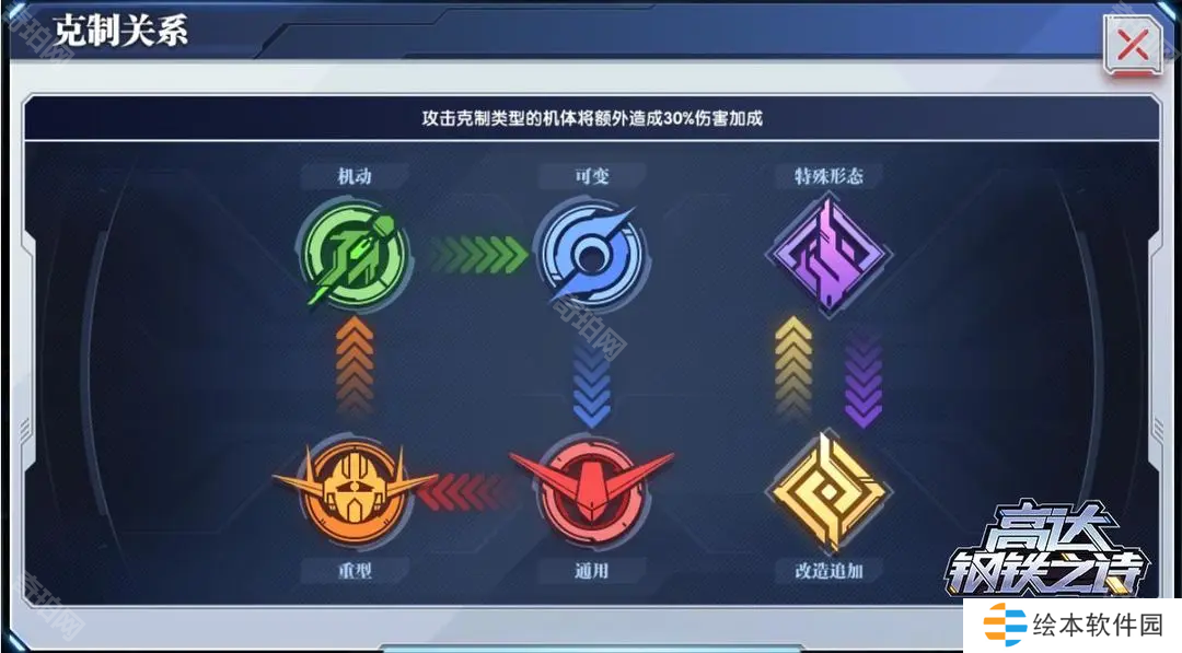 游戏**有6种机体类型,6种机体类型存在互相克制的关系: