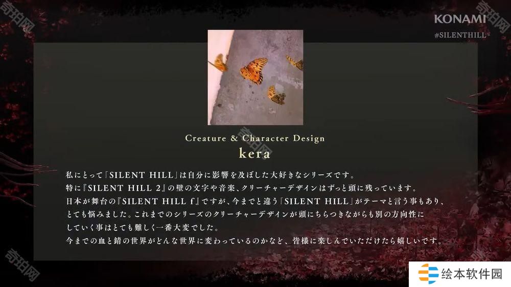 他在留言内提到:「《寂静岭 f》的故事背景并非是以往的欧美小镇,而是搬到了日本,这让我在设计时烦恼了许久。毕竟要跳脱系列作的框架去设计风格迥异的怪物,不是件容易的事情。这次的作品究竟和从前那以血迹和生锈金属所构成的世界有何不同之处?还请大家实际游玩来一探究竟。」