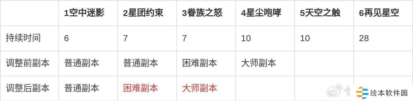 对于3月27日维护前已开服的《天空之触》(非新手)剧本将进行如下图的调整