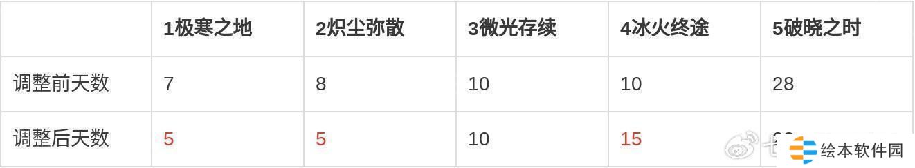 保持剧本总时长不变的情况下,延长了阶段4-冰火终途的时长