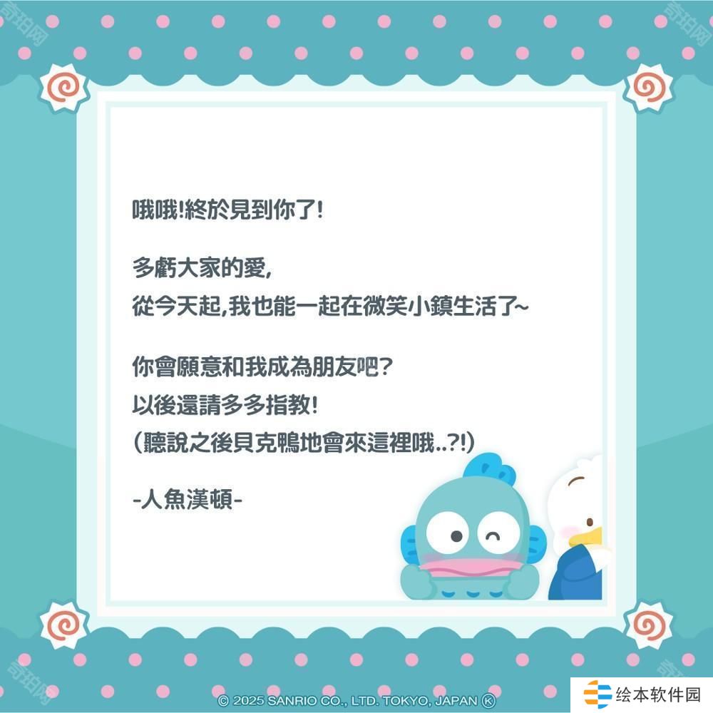 2025 年 3 月 11 日起居民有更多机会可以在微笑小镇上遇见人鱼汉顿啦!不仅可以将人鱼汉顿设定为超级好朋友,爱心商店、角色换装等地方都可以见到他的身影!喜欢人鱼汉顿的居民们千万别错过啦!搬到微笑小镇上的他还特别写信给大家呢!快到微笑小镇与他见面吧~