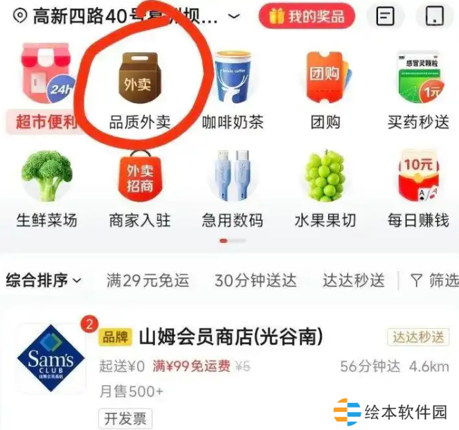 2、在秒送页面中找到品质外卖功能,在里面挑选想要下单的商品