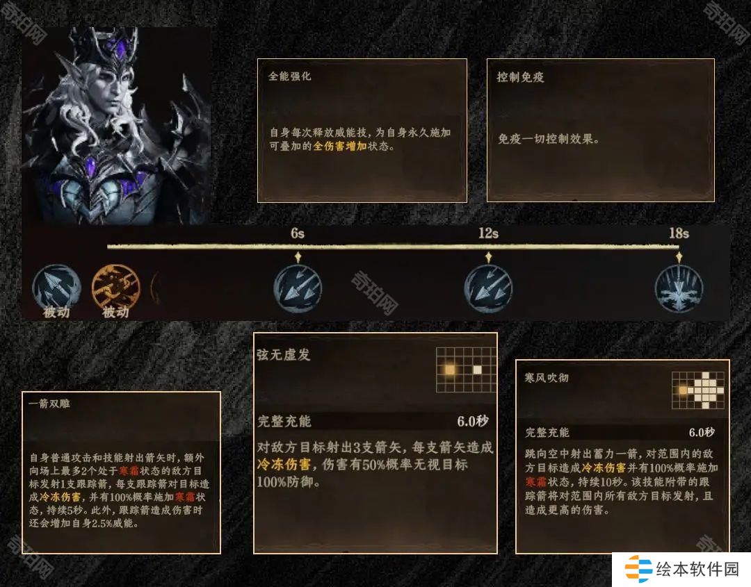 ①对于寒霜状态的卡牌威胁极大:小技能无视防御,威能技施加寒霜状态后,伤害直线上升,及时清理或免疫减益很重要