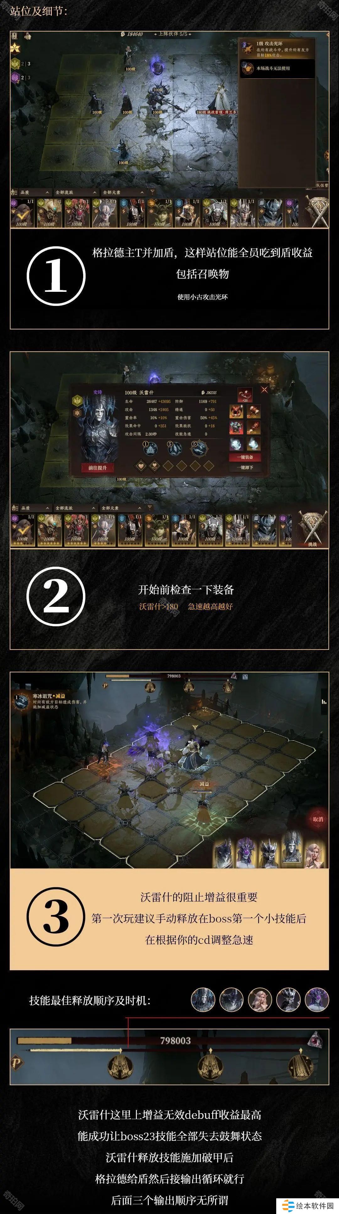 ①鼓舞的群体输出很可怕:小技能伤害不高,会给boss鼓舞增益,只要boss无法获得鼓舞,通关难度大大降低,有两种方式可以实现:清除增益和增益无效。
