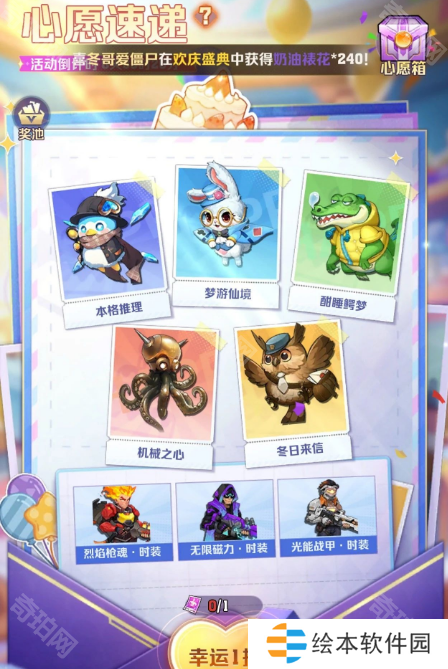 心愿速递=选8个皮肤核心加入自选,在抽到的里面选1个