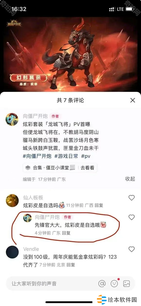 官方已经在抖音的评论区回复中正式宣布炫彩皮是自选的