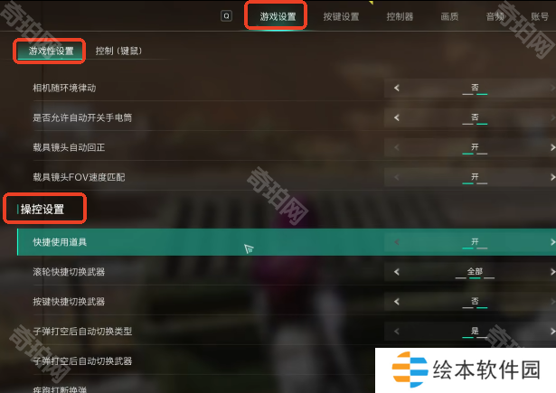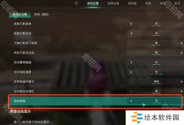 3、在操控设置中我们可以发现自动拾取这一项功能
