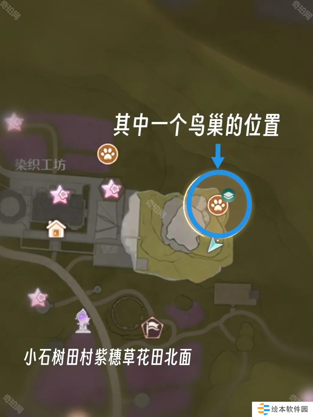 这里小编给大家提供一个鸟巢点位:小石树田村紫穗草花田北面
