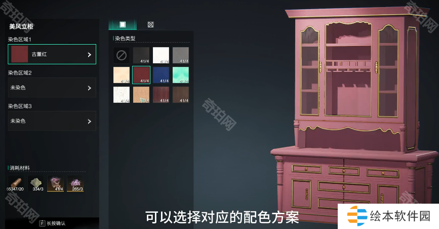 3、点击要给家具染上的颜色,长按F确认后就会直接制作出成品