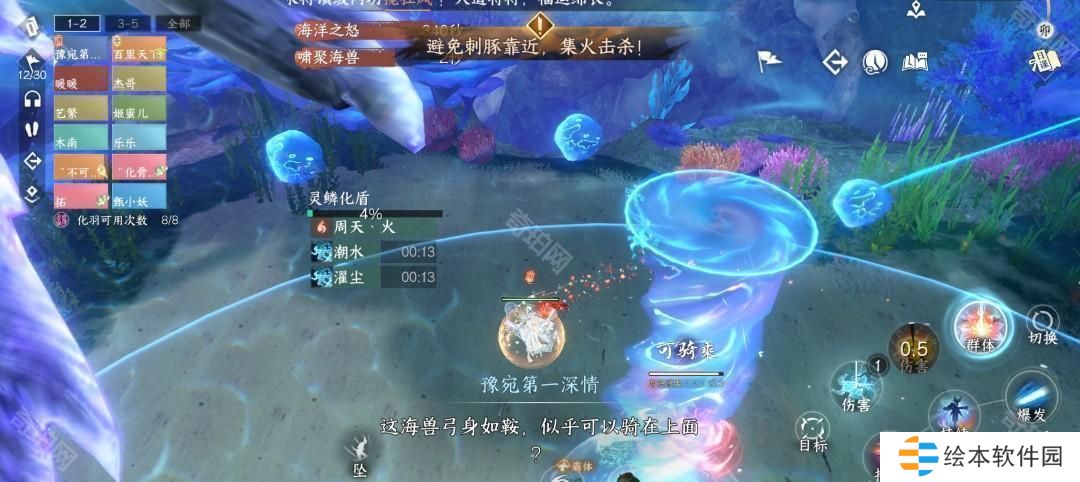④误伤友军:控制斩浪之潮与另外一名玩家进行对撞