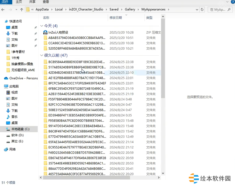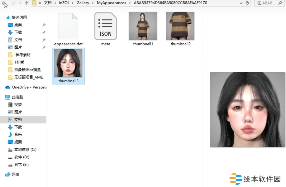 C盘/Documents(文档)/inZOI/Gallery/MyAppearances