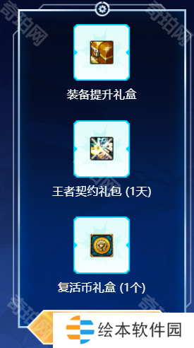 装备提升礼盒、王者契约的礼包(1天)、复活币礼盒x1
