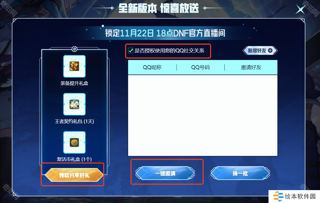 点击一键邀请后即可领取分享好礼