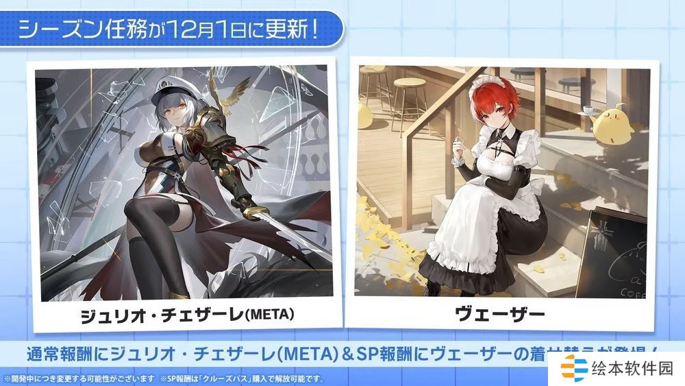世界巡游将于 12 月 1 日更新,基础奖励为「朱利奥 · 凯撒META)」、特许奖励为威悉的换装。