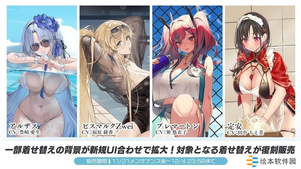 关于联动活动外的更新,一部份过去贩售的换装背景将配合全新使用者介面扩大,这些换装也将在 11 月 21 日维护后复刻贩售。