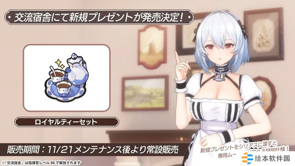 交流宿舍的全新礼物「皇家茶具组」即将登场,预计于 11 月 21 日维护后开始贩卖。