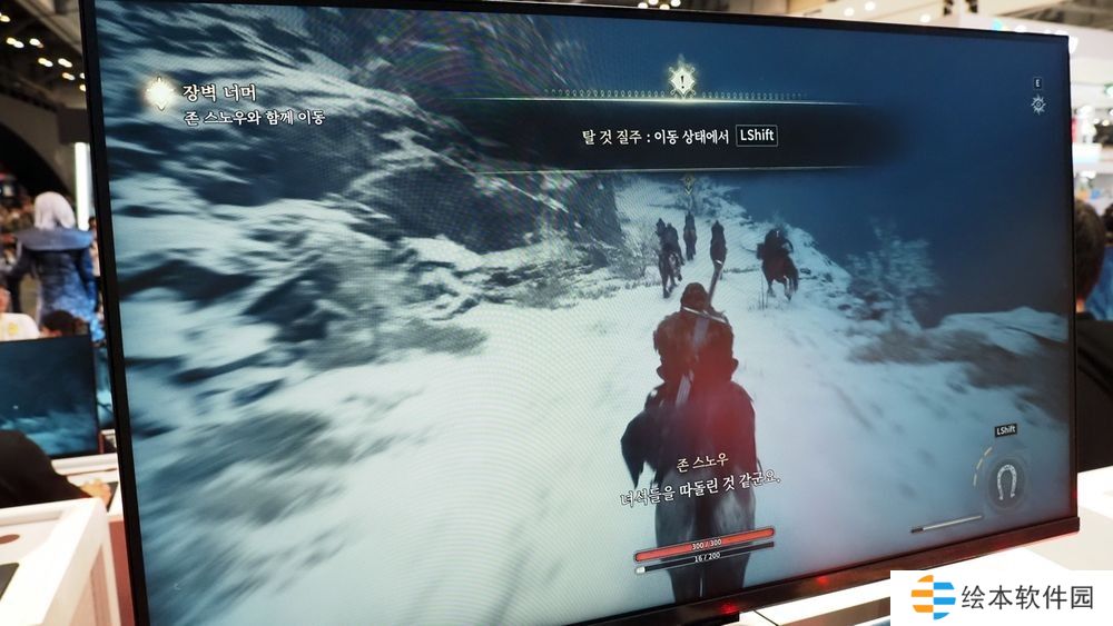 游戏刚开始时,就响起了剧集经典的背景音乐。据现场翻译表示,这部影集在韩国也非常受欢迎。游戏中的场景成功再现了北境寒冬的氛围,与原作一致,使在场的原作粉丝热情高涨,在我身旁的翻译更是抑制不住喜悦之情。