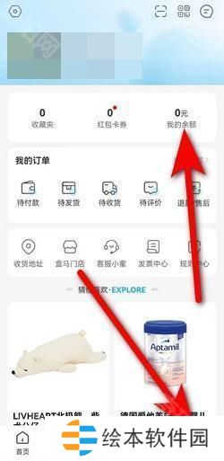 1、打开盒马APP,进入我的页面,选择上方我的余额