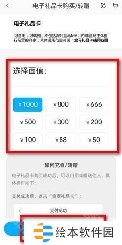 《盒马》电子礼品卡购买方法